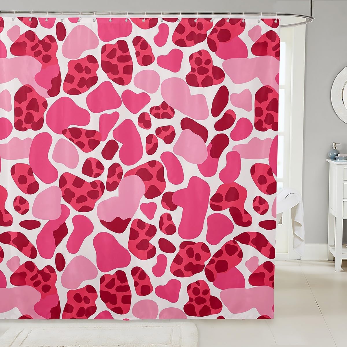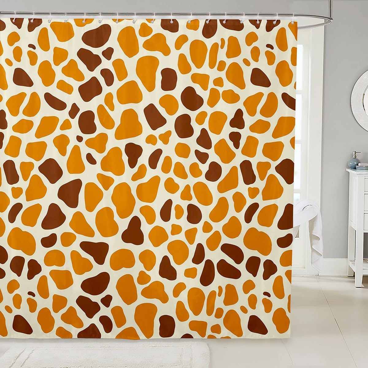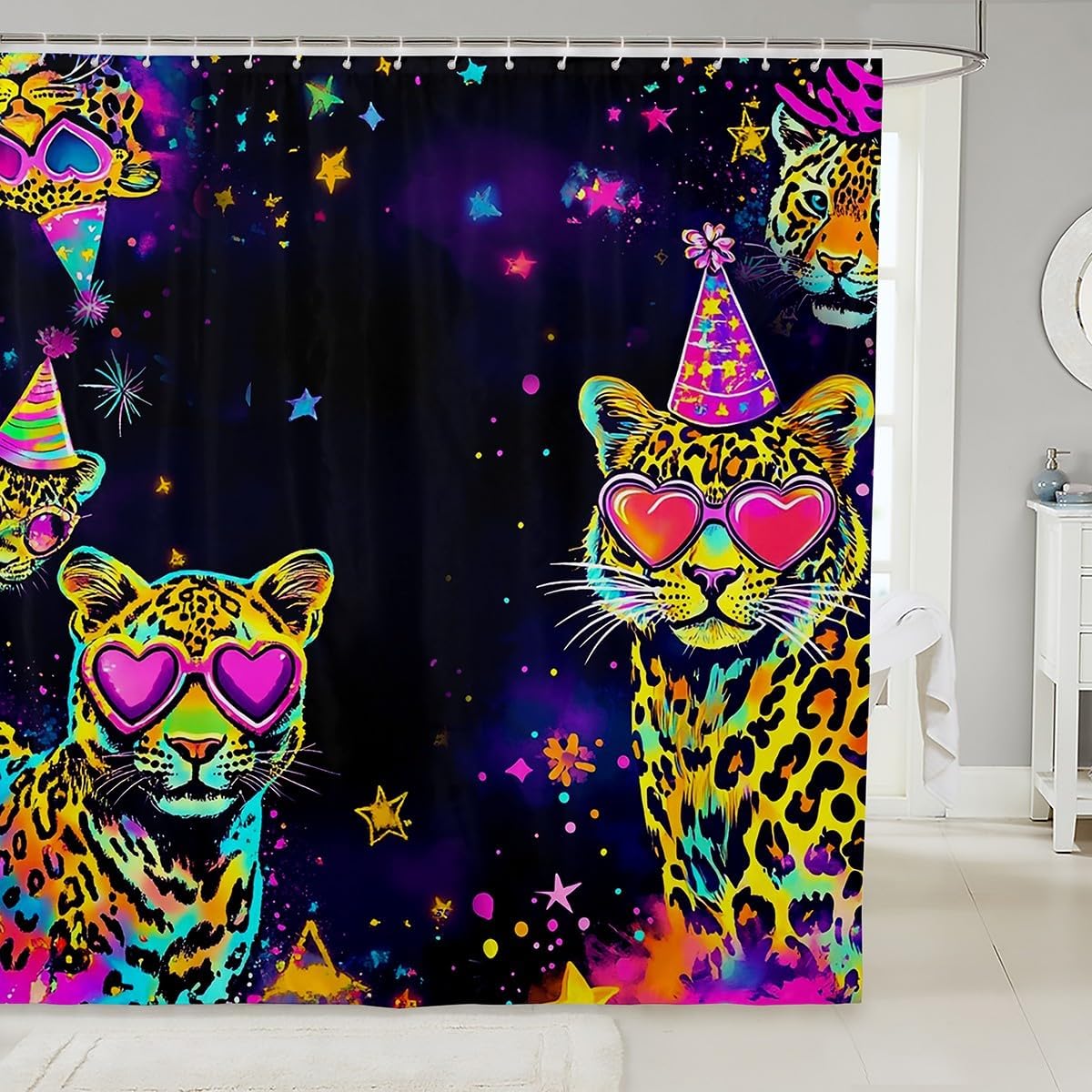 Welcome to our storeOur shower curtain, good decorate your bathroom, a fashionable and beautiful item to your friends or relatives; the shower curtain lets you enjoy a comfortable every time you bathFeatures:Designer Artwork: Chic personalized design shower curtain; not an ordinary shower curtain you can find anywhere; unique; genuine; fun Material: Made of polyester fabric with weight at the bottom; waterproofEach curtain contains 12 C shaped hooks and is easy to install; three generous size is sure to fit most bathtubs and shower stalls; machine washable and dries fast Range of size:72" x 72"72"x 78"72"x 84"Notice:1 Machine wash , hand wash or wipe with a damp cloth 2 There will be a slight difference in product sizes due to manual measurement